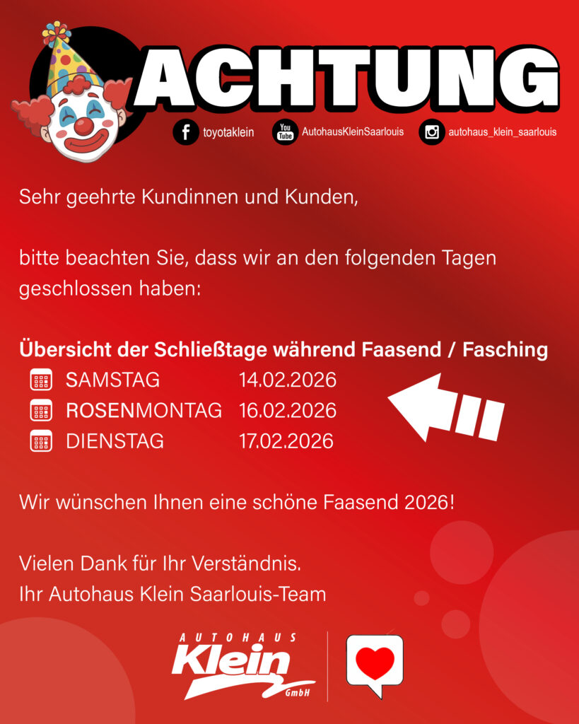 Übersicht der Schließtage während Faasend / Fasching